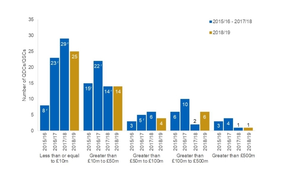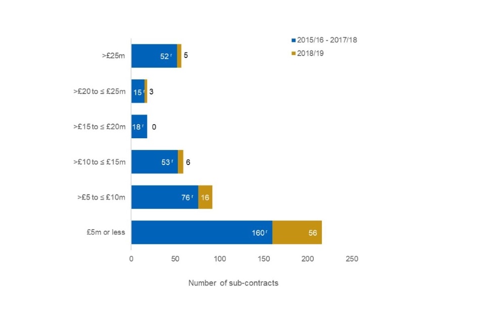 - The number of reported sub-contracts (the 20 highest value priced at greater than £1 million in each QDC/QSC) increased in 2018/19 QDCs/QSCs to 86, from 68 sub-contracts in 2017/18 QDCs/QSCs.