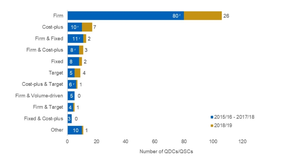 - The most commonly reported regulated pricing method (by number of QDCs/QSCs) was firm pricing with 147 QDCs/QSCs using this method in at least a proportion of the contract. By total contract price, the most common was target pricing, with 42 per cent of contract price attributed to this pricing method.