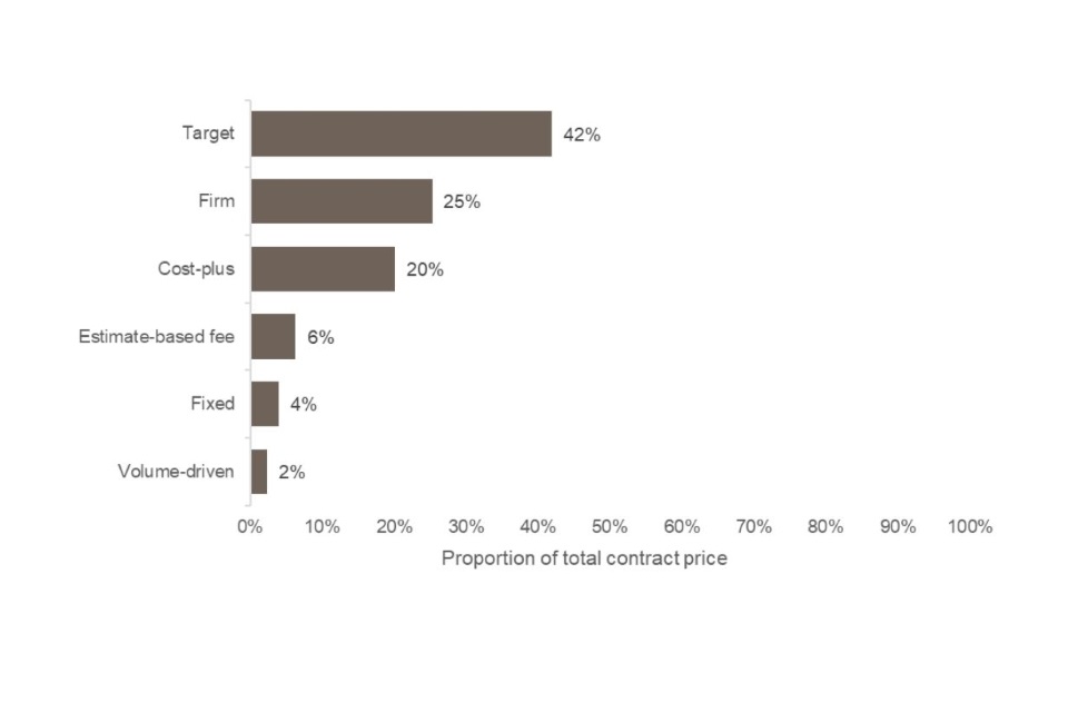 Figure 8 presents the proportion of the contract price attributed to each of the pricing methods across all QDCs/QSCs. It shows that, across the four years, target pricing was the pricing method with the highest contract price associated with it (42 per cent). Volume-driven pricing was the least utilised pricing method overall, with 2 per cent of the total contract price associated with this method.