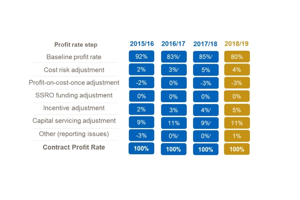- Some QDCs/QSCs had reported a BPR or SSRO funding adjustment that differed from the rate set by the Secretary of State (for example where a profit rate includes sunk costs, before the BPR was set), which explains why these figures do not show the published rates. ↩ ↩2