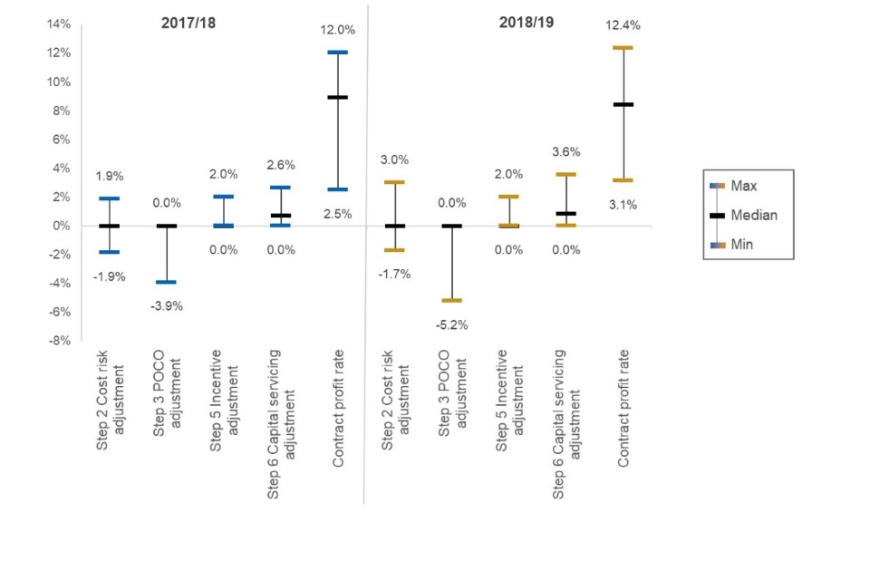 Figure 10: Average (mean) profit rate steps agreed at date contract became a QDC/QSC, for 2018/19 QDCs[footnote 2]